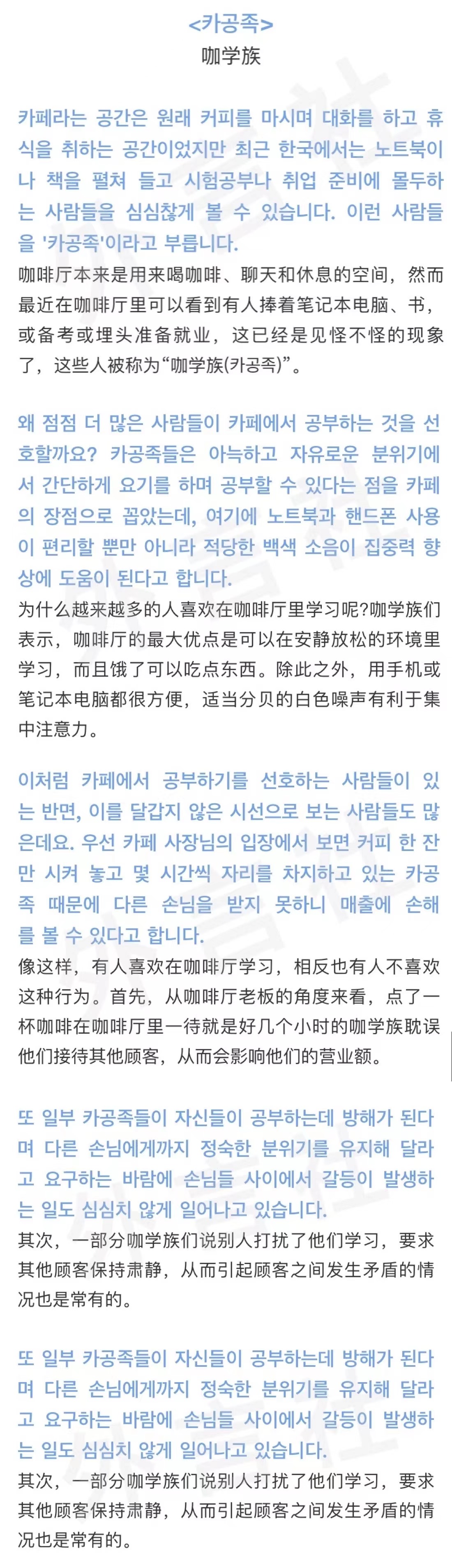【中韩双语阅读】咖学族
