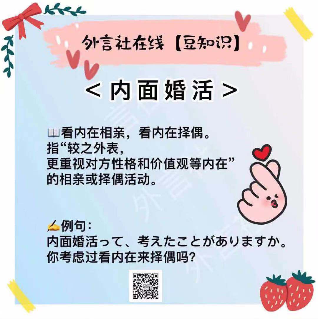 今日日语流行词:内面婚活大家一起来猜猜看是什么意思呢?