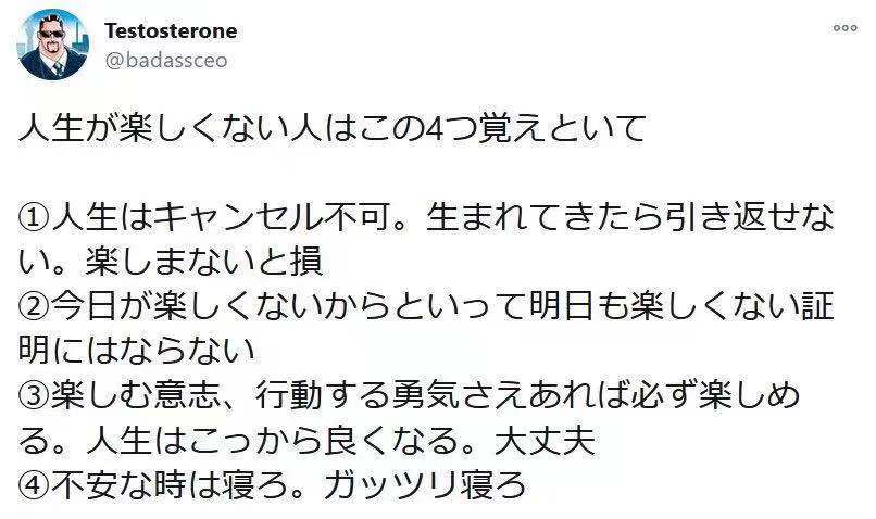 给不再享受人生的人的4个建议:️1·人生不可撤销,既然出生了就没有回头路,不好好享受人生的话等于白来一趟。️2·你今天不开心不代表明