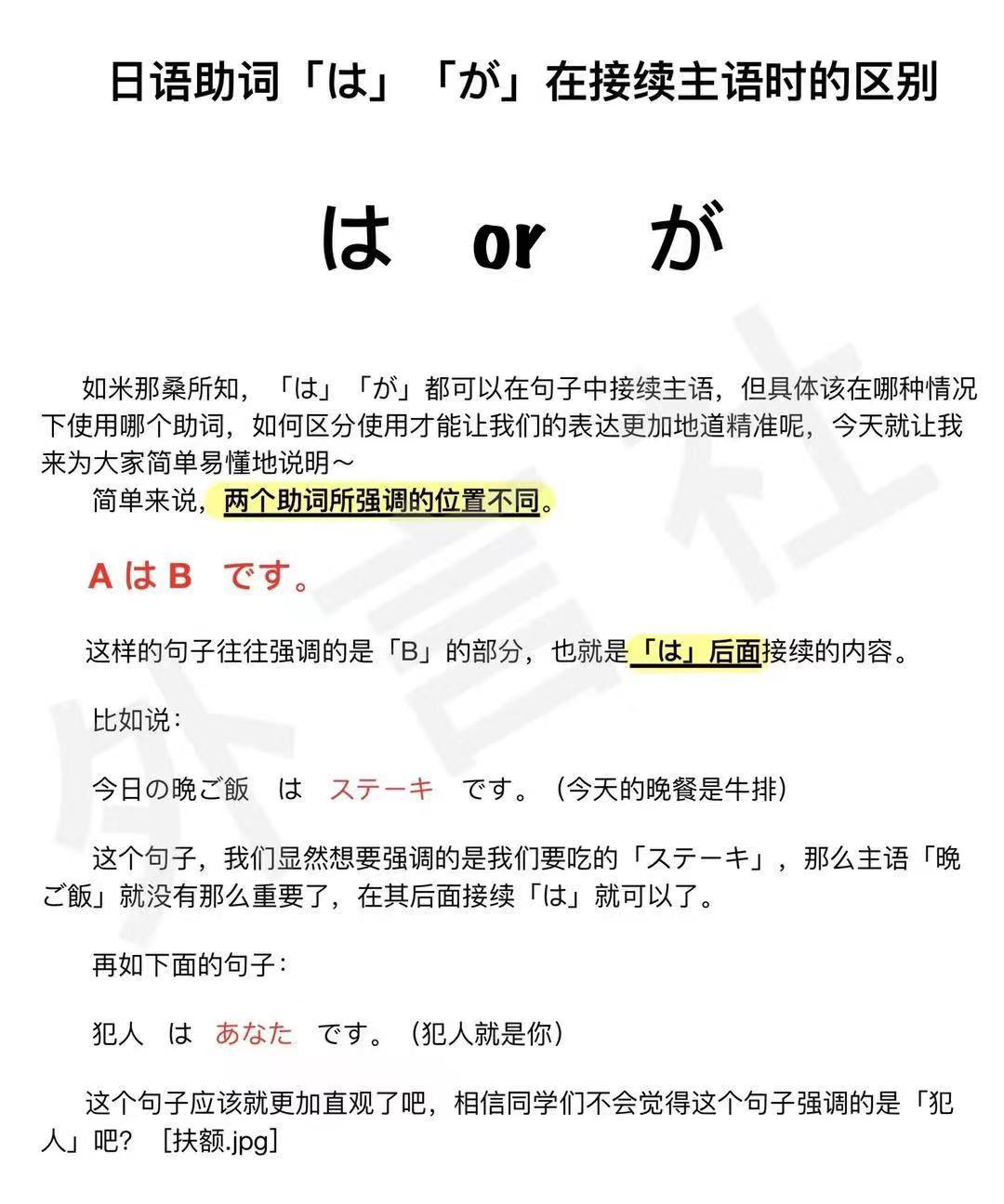 日语助词「は」「が」在接续主语时的区别
