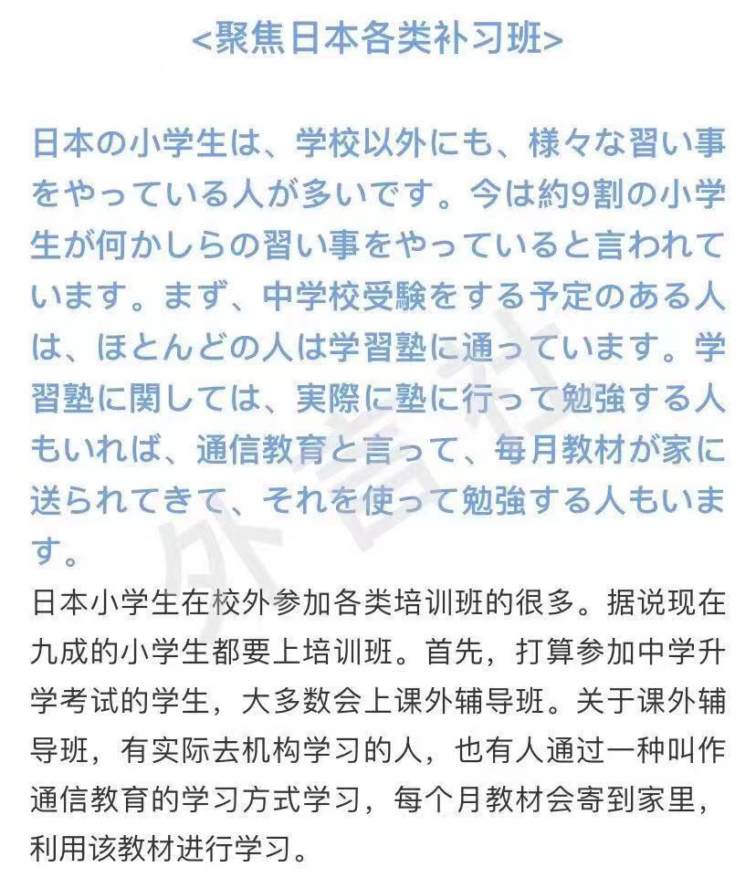 虽然考试在亚洲国家拥有很长的历史,早就成为了亚洲文化的一部分,在这样考试制度下,催生的补习班文化中国是有,日本却更甚日本是典型的学