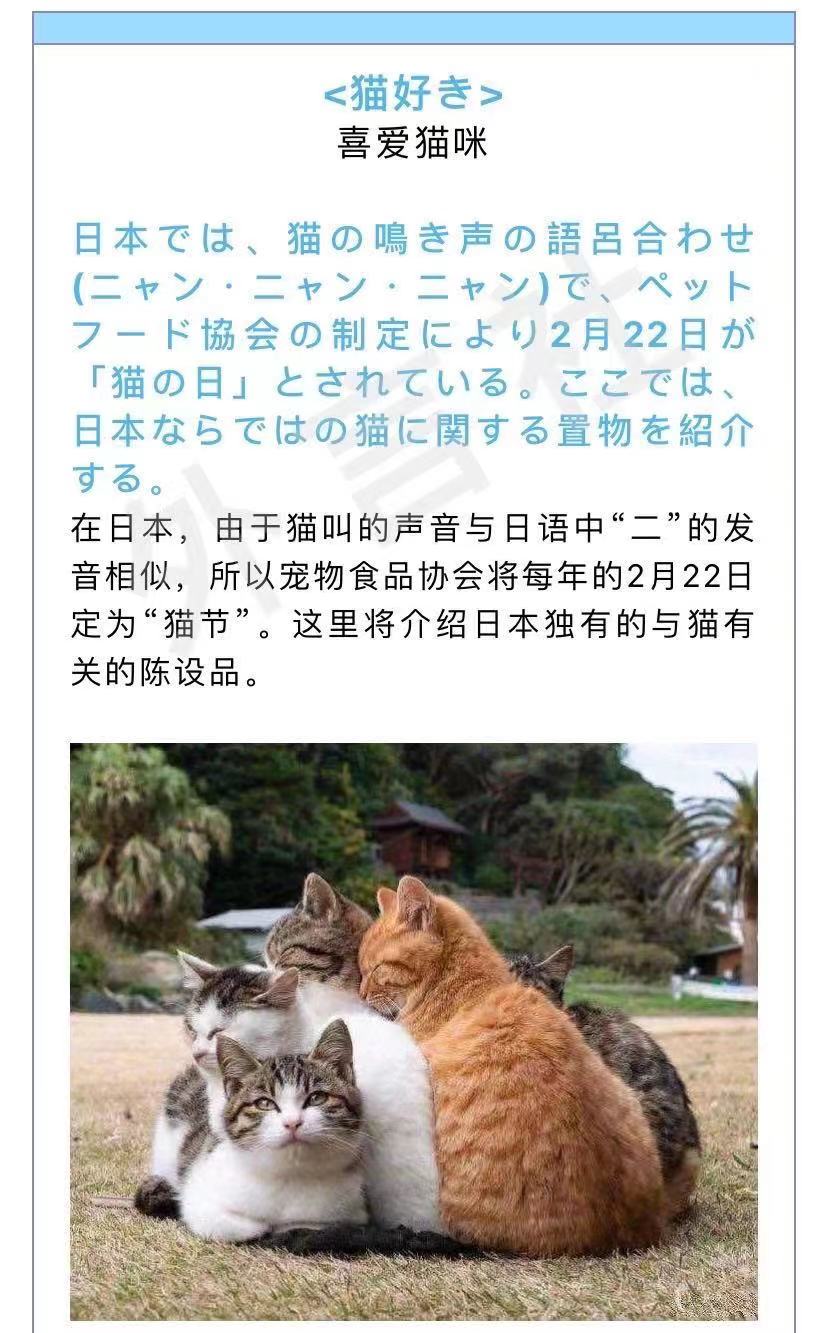 日本的猫文化十分有名,日本人也非常喜欢猫在日本,有猫咖啡馆、猫神社和猫旅游业,甚至还有一个猫火车站长、猫日(2月22日)和猫岛。为什