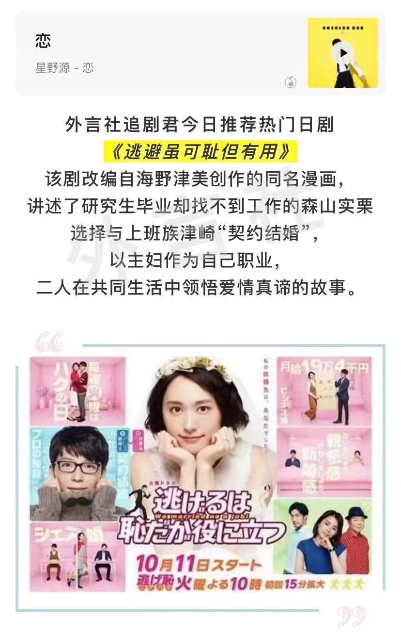 寒冷的冬季最适合呆在温暖的被窝里刷剧啦️~推荐日剧《逃避虽可耻但有用》剧集的故事设计十分扎实,共感度很强,让观众跟着男女主角一步步