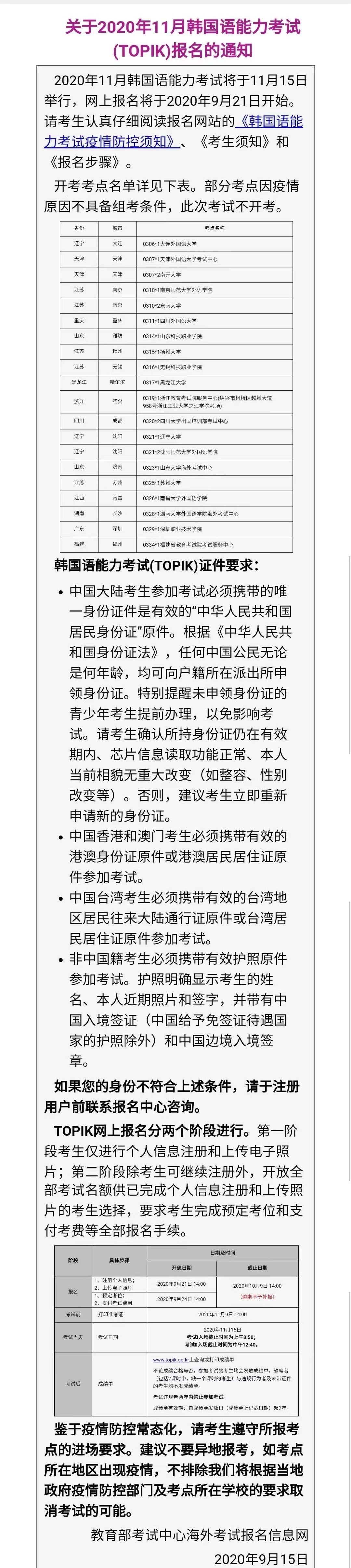 ️2020年11月TOPIK考试报名通知