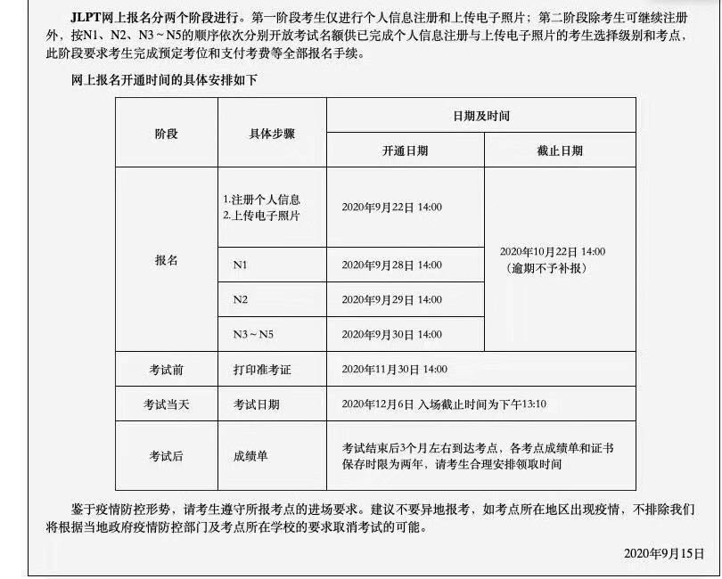 ️2020年12月JLPT考试报名通知