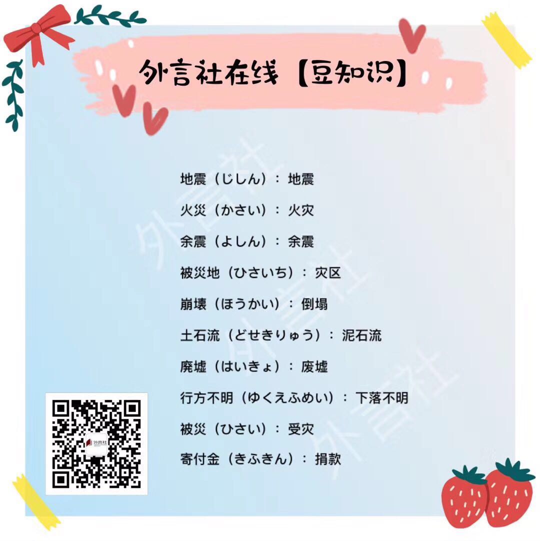 日本作为世界上地震频发的国家,在抗震救灾方面也为各国提供了经验教训和对策大家一起来看一看那些与地震相关的日语词汇吧~