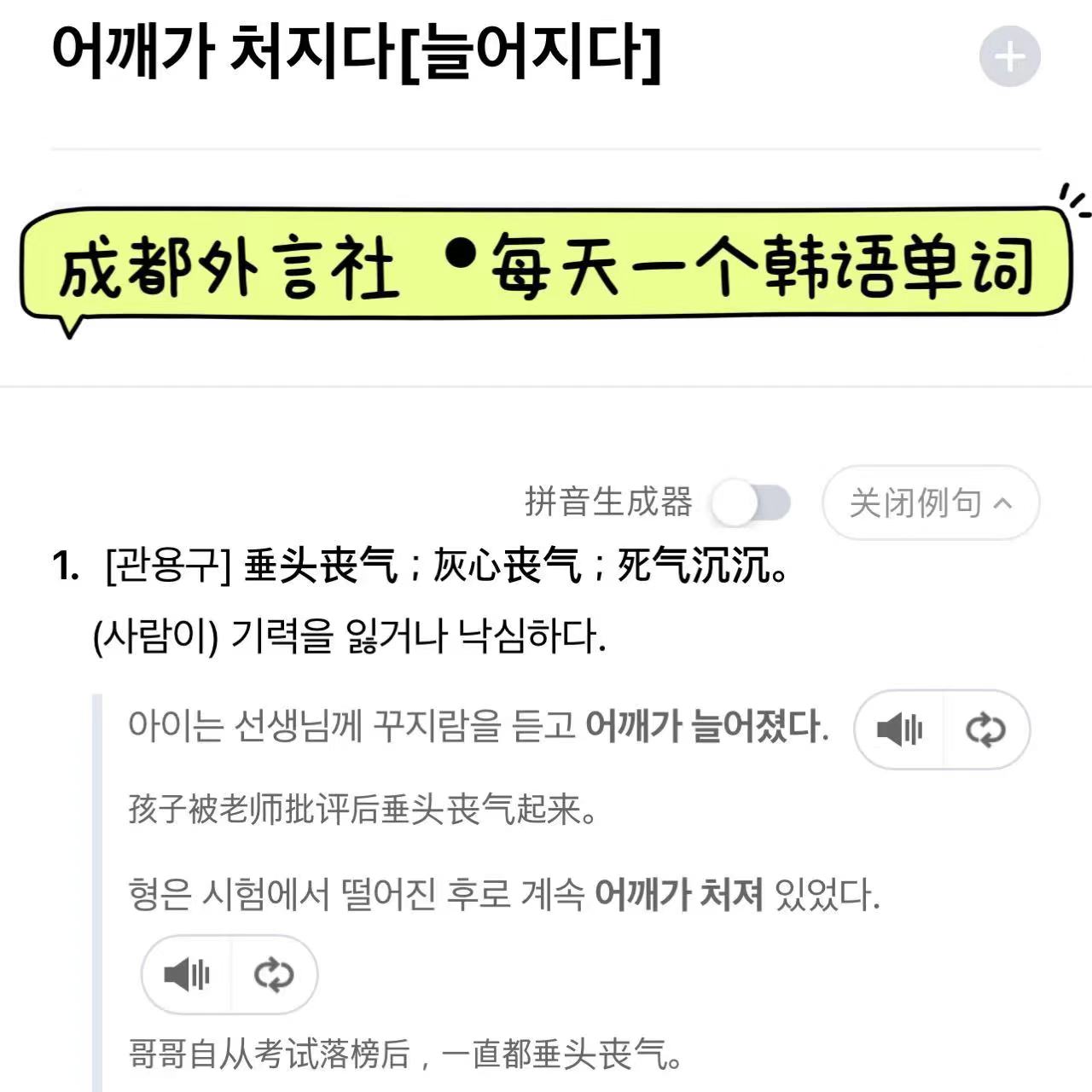 【外言社★每天一个韩语单词】你知道垂头丧气用韩语怎么表达吗?