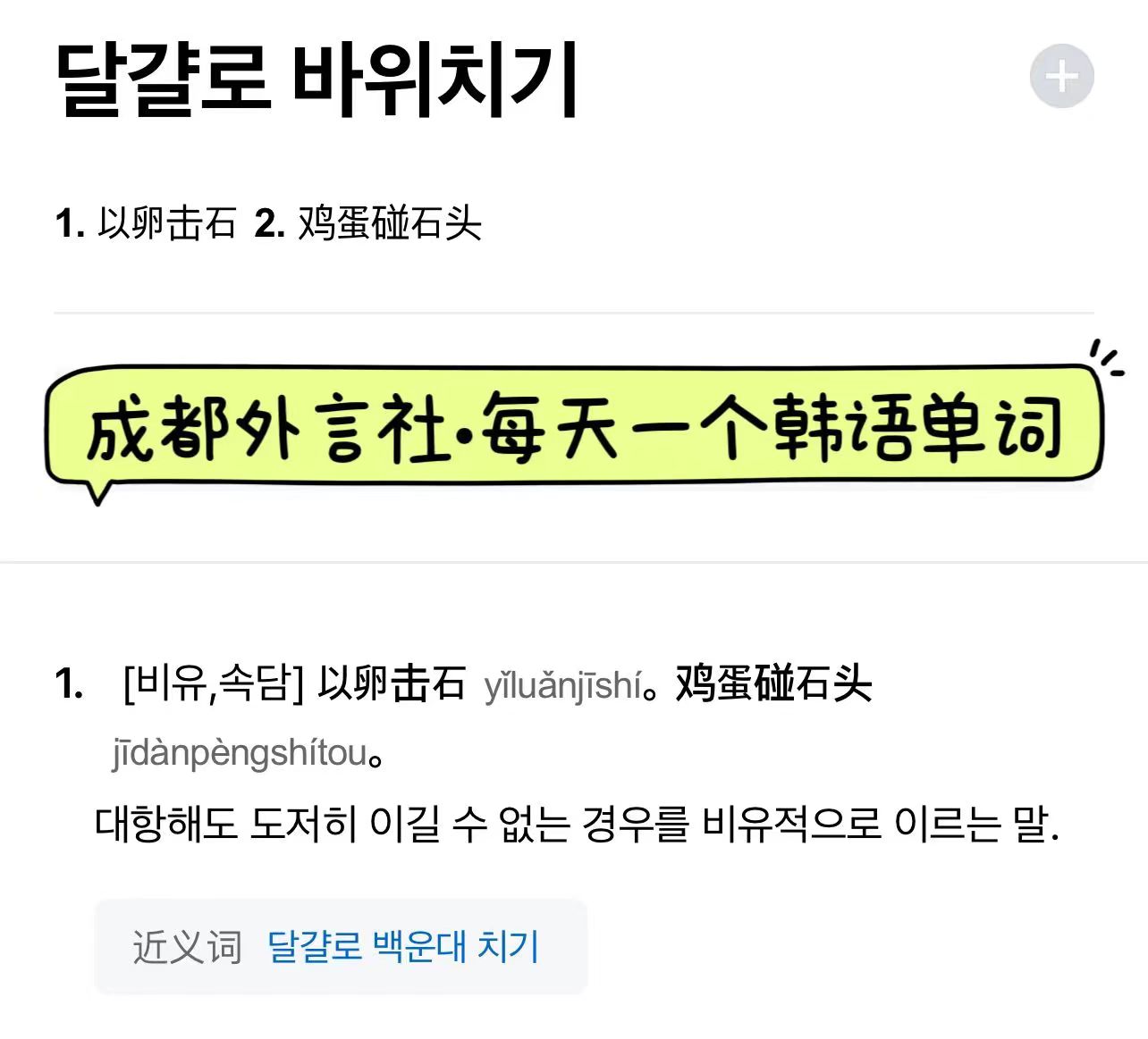 【外言社★每天一个韩语单词】你知道以卵击石用韩语怎么说吗?
