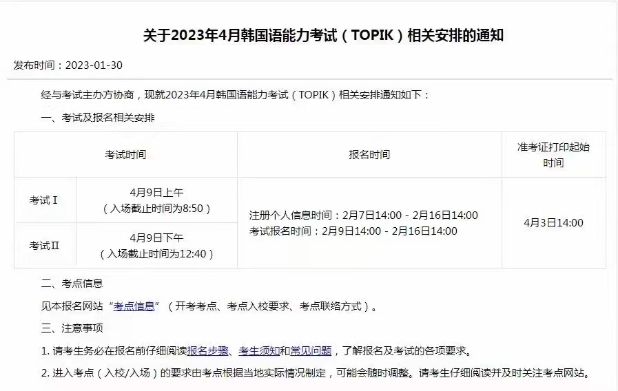 ★考试时间:2023年4月9日★考试费用:400元★中国官网:https: topik neea edu cn ★注册时间:2 7 14:00-2 16 14:00★报名时间:2 9
