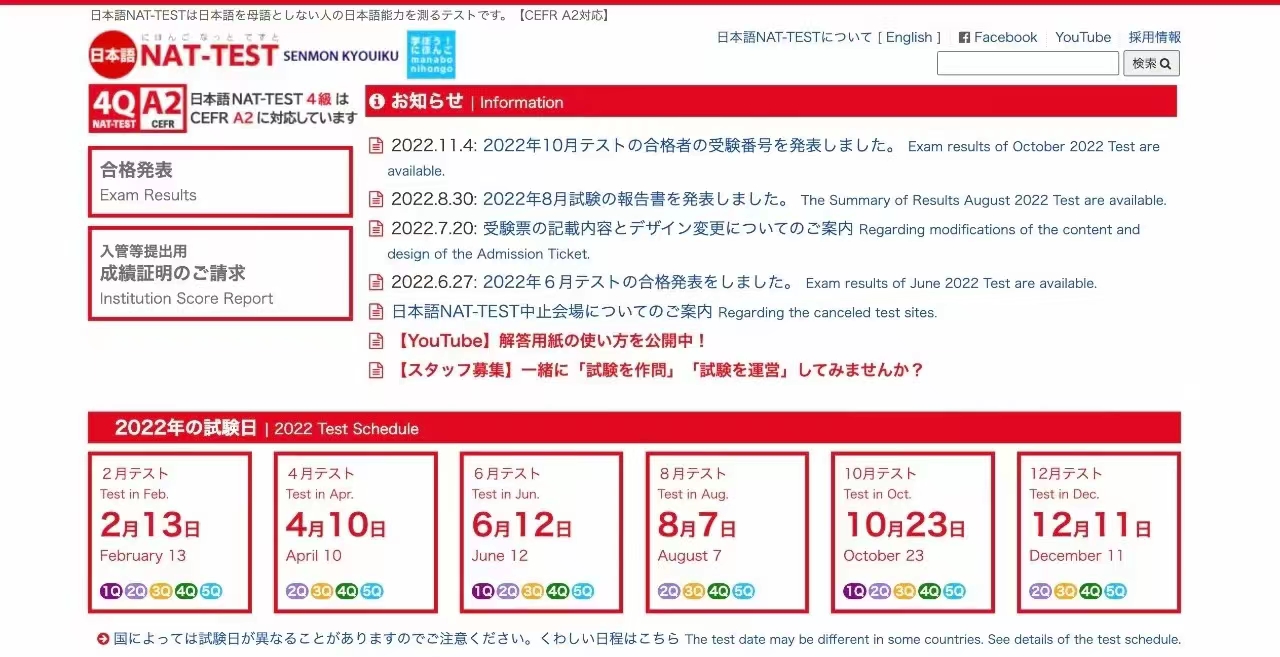 NAT-TESTNAT-TEST是由日本专门教育出版创立和主办的检验非日本语母语者能力考试。其考试设定基准对标JLPT,分级((5个等级)和命题形式上与