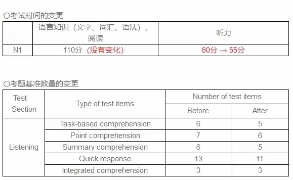 日本语能力试验官网公布了JLPT考试的变更点,从2022年第2次(12月)考试开始,将部分变更考试时间和问题数的标准:· N1考试: 听力考试分