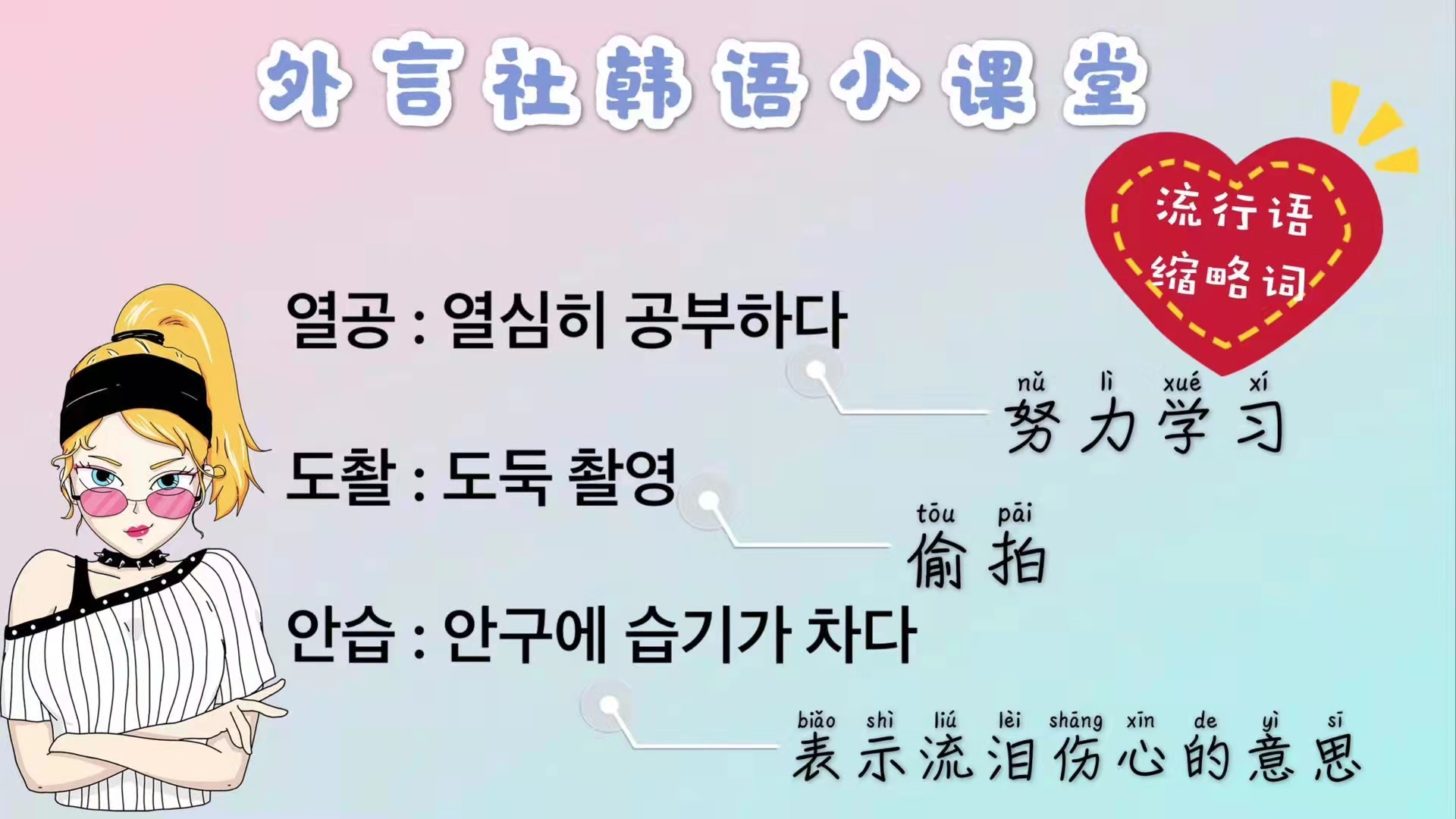 课堂上大家要努力学习,不要总想着偷拍老师的表情包,老师知道了会伤心流泪的~一起来学习一下努力学习偷拍伤心流泪的韩语缩略语吧~